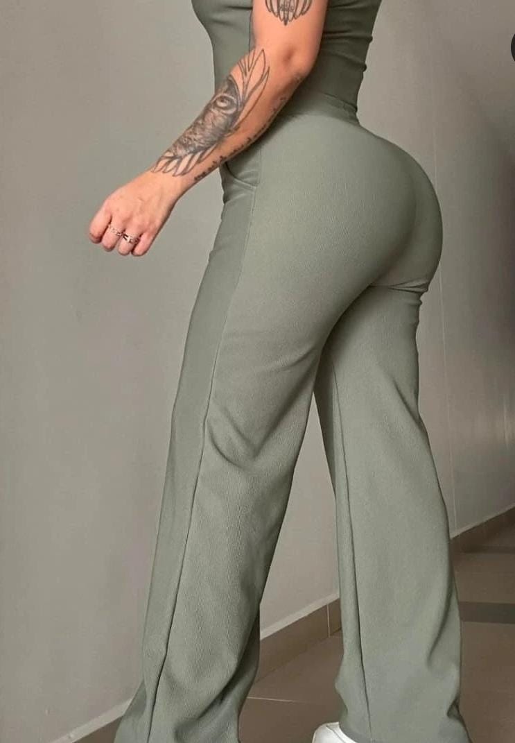 Conjunto sport con blusa y pantalon recto un estilo relajado y urbano en diferentes tonalidades como verde, negro y blanco.